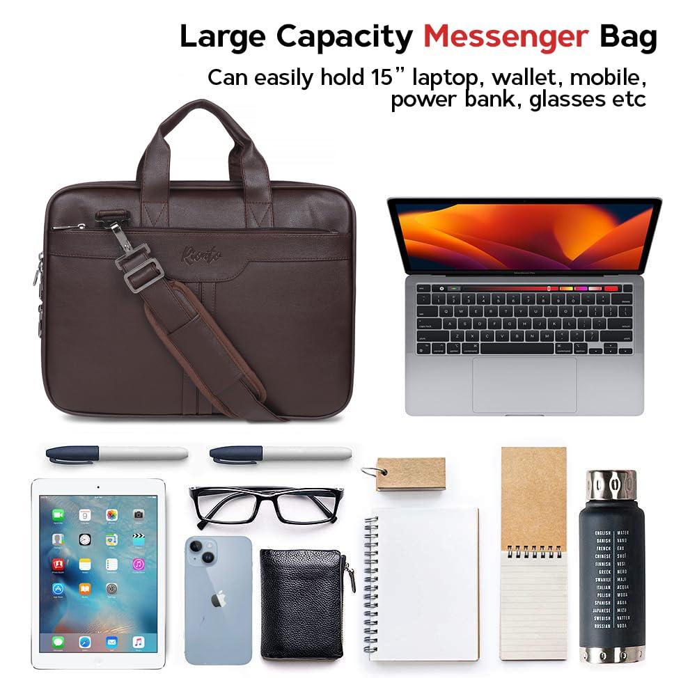 The stylish Messenger Bag is designed to fit laptops and MacBooks up to 15. 6 inches; its large-sized main compartment padded to protect your laptop while numerous smaller inner pockets & a secure zipper area at the front keep all your documents, charger, phone and other miscellaneous items organized. Whether you're going to the office, doing business or working from your favorite coffee shop & café this bag makes sure everything you need is here at your fingertips.